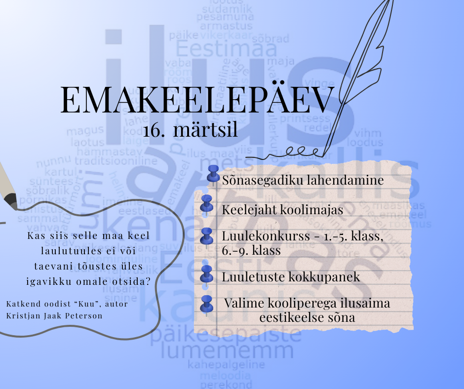 Noorteka amps 02.03 Loomise kuupäev 20.02.2026 Autor Mari-Liis L EV 108. sünnipäevale pühendatud aktus Loomise kuupäev 20.02.2026 Autor Mari-Liis L Noorteka amps 16.02 Loomise kuupäev 10.02.2026 Autor Mari-Liis L Eesti Vabariigi sünnipäevale pühendatud aktus Loomise kuupäev 10.02.2026 Autor Mari-Liis L Vaata rohkem