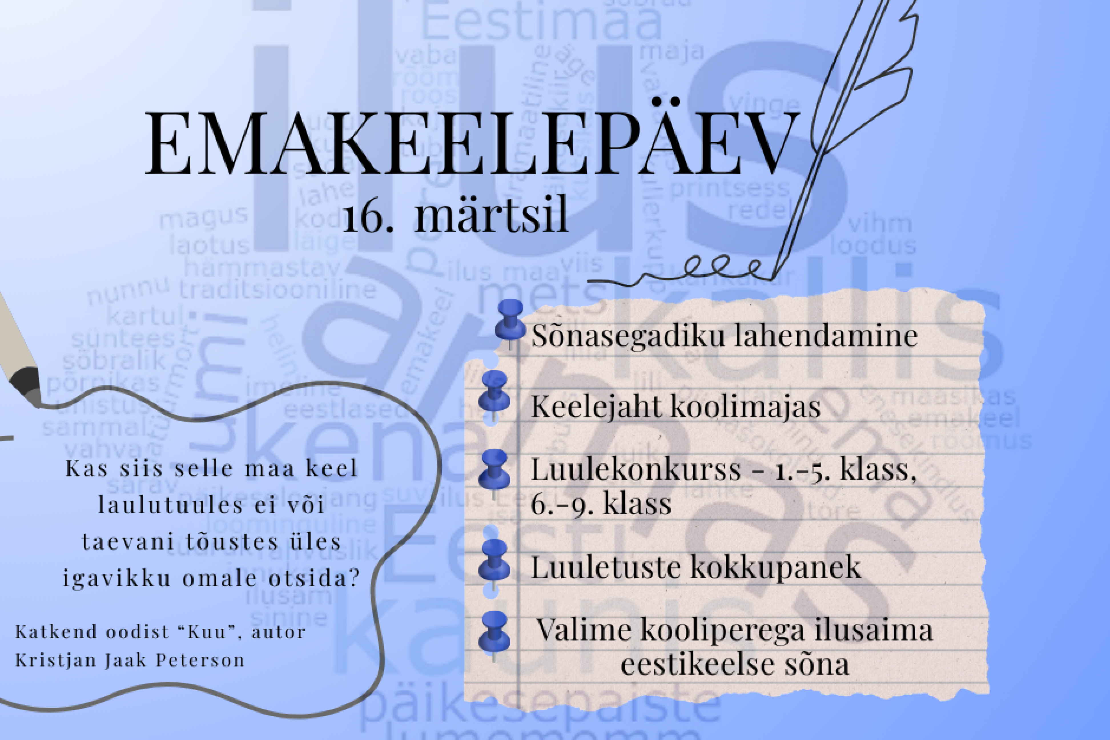 Noorteka amps 02.03 Loomise kuupäev 20.02.2026 Autor Mari-Liis L EV 108. sünnipäevale pühendatud aktus Loomise kuupäev 20.02.2026 Autor Mari-Liis L Noorteka amps 16.02 Loomise kuupäev 10.02.2026 Autor Mari-Liis L Eesti Vabariigi sünnipäevale pühendatud aktus Loomise kuupäev 10.02.2026 Autor Mari-Liis L Vaata rohkem